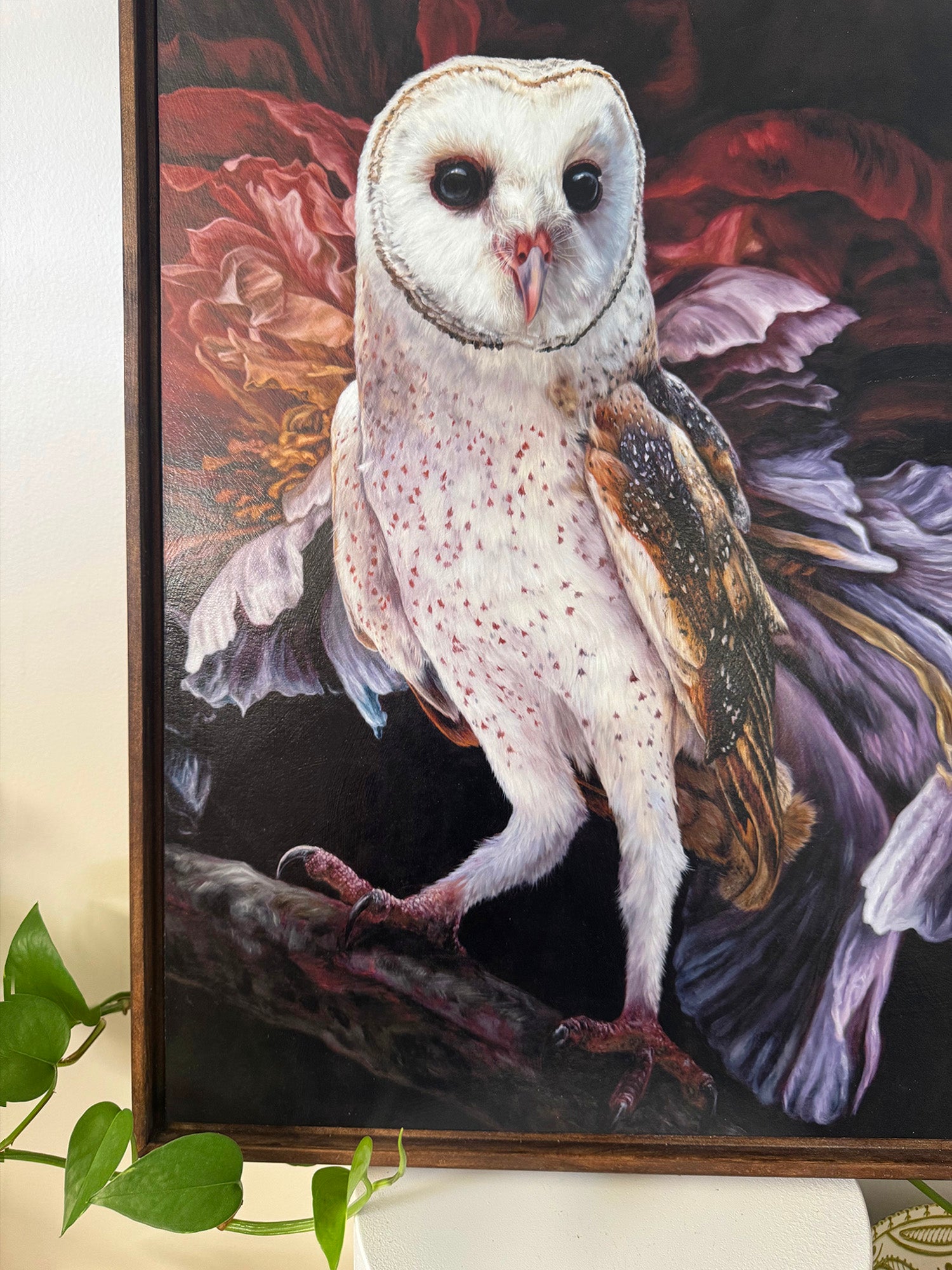 This unique special edition print of my Barn Owl painting "Huntress" is a one-off mounted and framed reproduction.